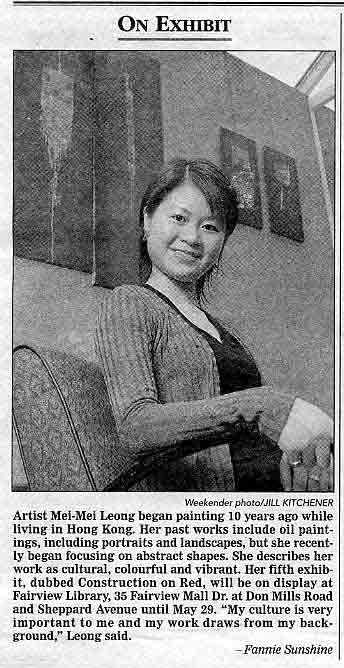 < back Sunshine, Fannie. On Exhibit, The Weekender [North York] May 15, 2004: 16